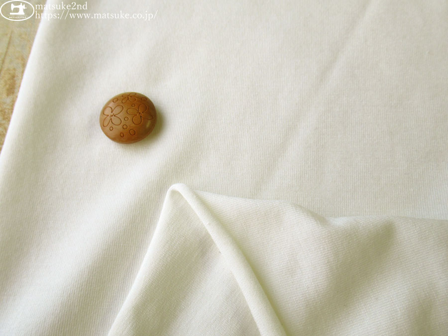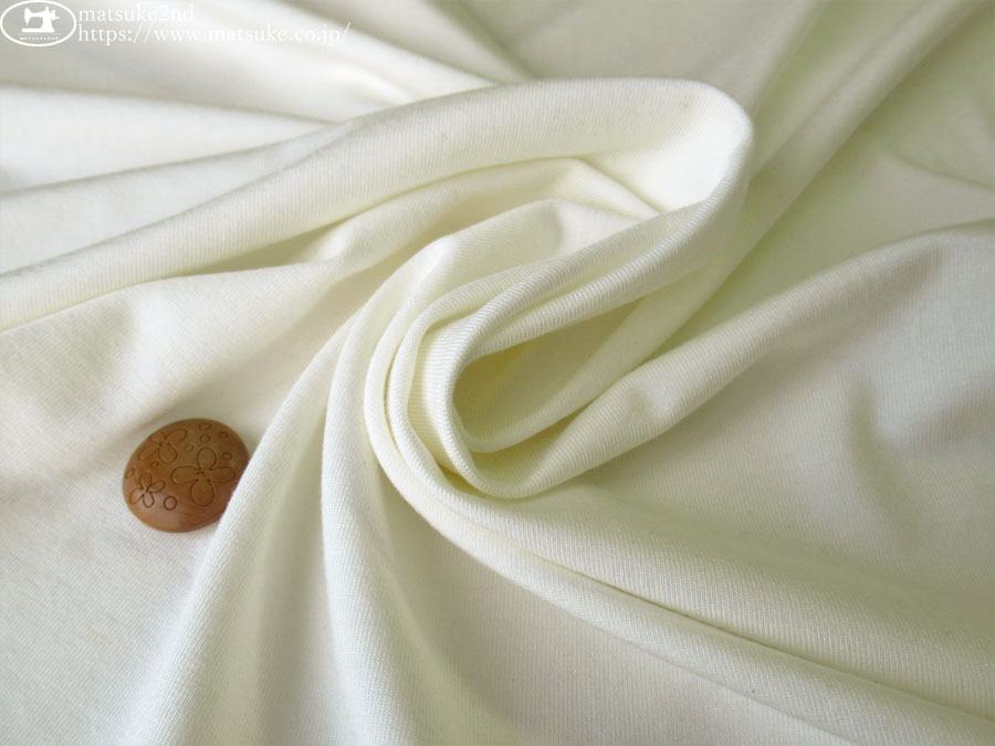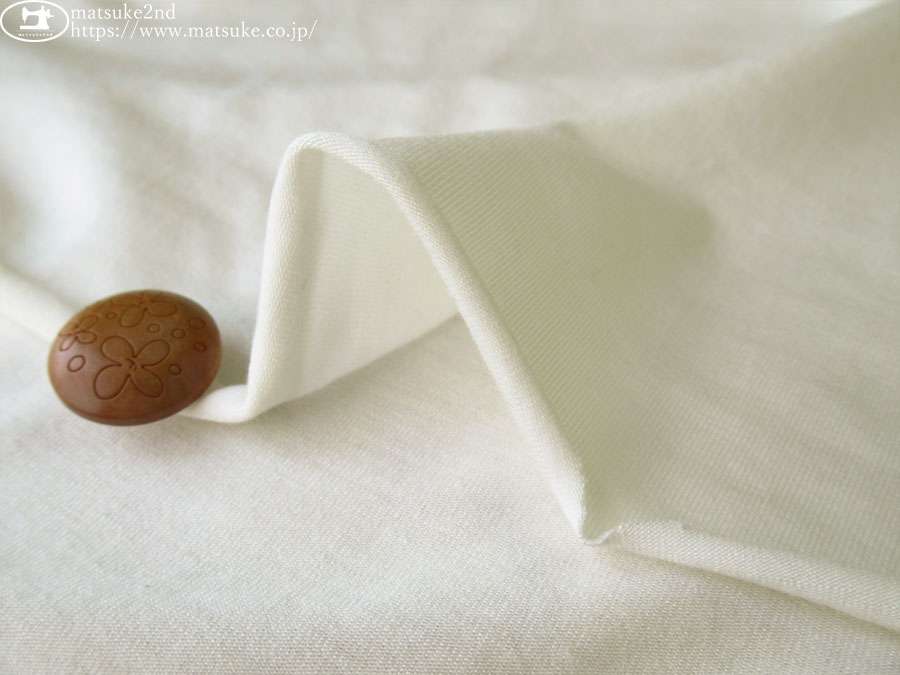 TOP 秋冬物生地ニット地 デッドストック反ニット地 アウトレット生地ニット地 ニット生地種類でさがす天竺ニットベア天竺 ニット生地素材でさがすその他 ニット生地柄でさがす無地ホワイト/ナチュラル系 新着商品[2026/1月]新着商品[2026/1/27] 【デッドストック反】 秋冬インナー向き!やわらかベア天竺ニット アイボリーホワイト 158cm幅 レーヨン、ポリウレタン(混紡率不明) テンション中~高 秋冬インナー(肌着)向きのベア天竺素材です。 一般的なTシャツ地よりはやや薄手で、ほんのり肌の色が透ける程度の厚みです。 しっとりなめらかな手触りが魅力で、落ち感のある柔らかい生地です。 毛羽の少ないクリアな表面感で、自然な光沢感があります。 縦横方向に伸縮性があります。 インナー(肌着)、トップス、ナイトウェアなどのお洋服にいかがでしょうか。 ボタンの大きさは2cm 【デッドストック反】 秋冬インナー向き!やわらかベア天竺ニット アイボリーホワイト 価格: ¥290 (税込 ¥319) [ポイント還元 3ポイント~] 販売期間: 数量: ×50cm 品番/カラー在庫購入np-9384 アイボリーホワイト○ 品番/カラー在庫購入np-9384 アイボリーホワイト○ 返品についての詳細はこちら