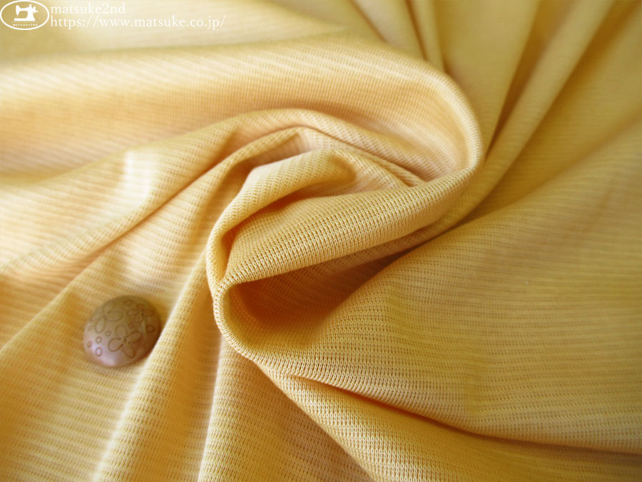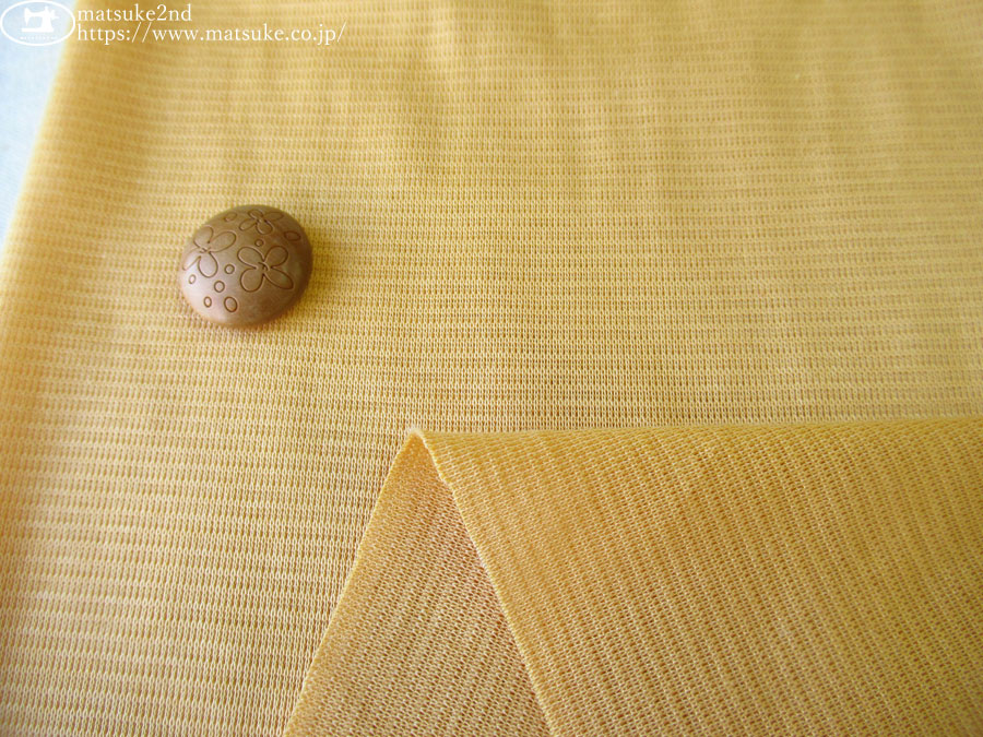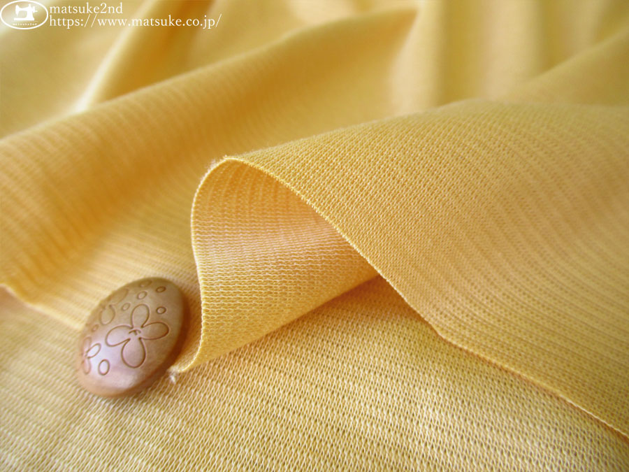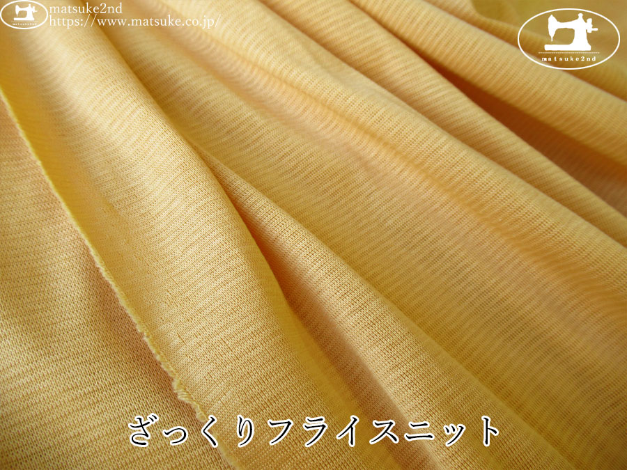 TOP 春夏物生地ニット生地 アウトレット生地ニット地 デッドストック反ニット地 ニット生地種類でさがすフライスニット ニット生地種類でさがすフライスニットスパンフライス ニット生地柄でさがす無地ホワイト/ナチュラル系 ニット生地素材でさがすコットン 新着商品[2026/3月]新着商品[2026/3/17] 【デッドストック反】 ざっくりフライスニット アプリコットイエロー 約130cm幅 コットン(混紡率不明) テンション中~高 一般的なTシャツ地程度の厚みで、柔らかくい肌触りのよいフライスニットです。 ざっくりとした編みで通気性がよく、ほどよいシアー感が魅力です。 表面には少し波打つような横畝と、艶やかな光沢感があります。 横方向に良く伸びます。 プルオーバータイプのトップスやチュニックなどのお洋服にいかがでしょうか。 ボタンの大きさは2cm 【デッドストック反】 ざっくりフライスニット アプリコットイエロー 価格: ¥220 (税込 ¥242) [ポイント還元 2ポイント~] 販売期間: 数量: ×50cm 品番/カラー在庫購入np-9434 アプリコットイエロー○ 品番/カラー在庫購入np-9434 アプリコットイエロー○ 返品についての詳細はこちら