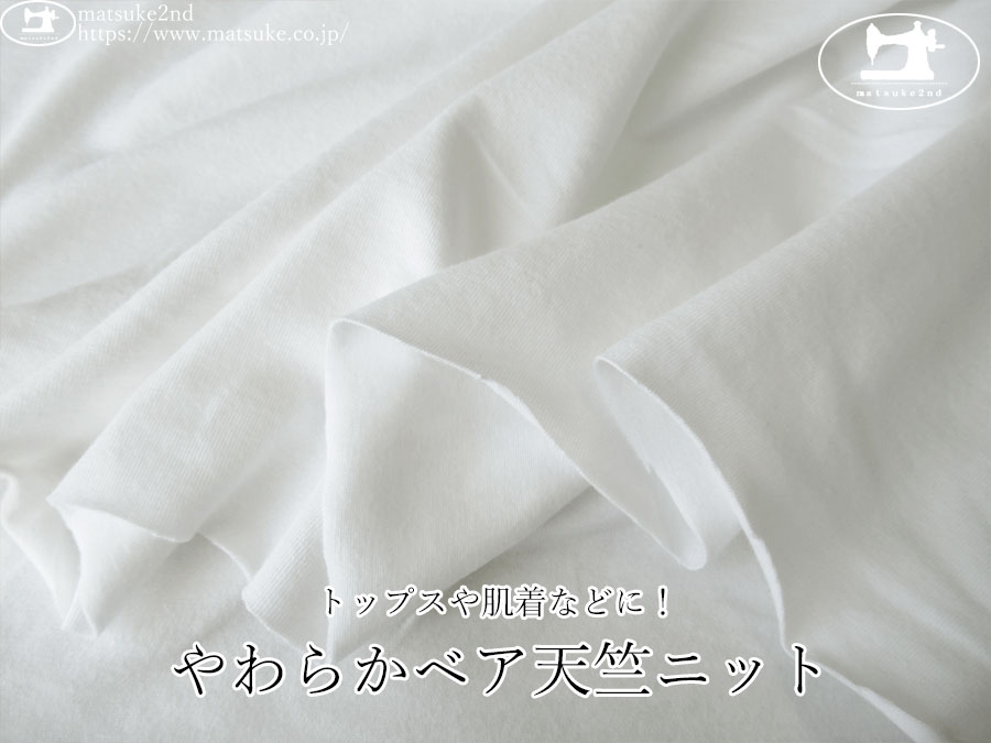 TOP 春夏物生地ニット生地 アウトレット生地ニット地 デッドストック反ニット地 ニット生地種類でさがす天竺ニットベア天竺 ニット生地柄でさがす無地ホワイト/ナチュラル系 ニット生地素材でさがすコットンその他 新着商品[2026/4/7] 【デッドストック反】 トップスや肌着などに!やわらかベア天竺ニット オフホワイト 140cm幅 コットン、ポリウレタン(混紡率不明) テンション中 トップスやワンピース、肌着やキッズアイテムなどにおすすめのベア天竺素材です。 一般的なTシャツ地程度の厚みで、柔らかく、さらっとした優しい手触りが魅力です。 縦横方向に伸縮性があります。 トップスアイテムや、インナーウェア(肌着)などにいかがでしょうか。 ボタンの大きさは2cm 【デッドストック反】 トップスや肌着などに!やわらかベア天竺ニット オフホワイト 価格: ¥290 (税込 ¥319) [ポイント還元 3ポイント~] 販売期間: 数量: ×50cm 品番/カラー在庫購入np-9451 オフホワイト△ 品番/カラー在庫購入np-9451 オフホワイト△ 返品についての詳細はこちら