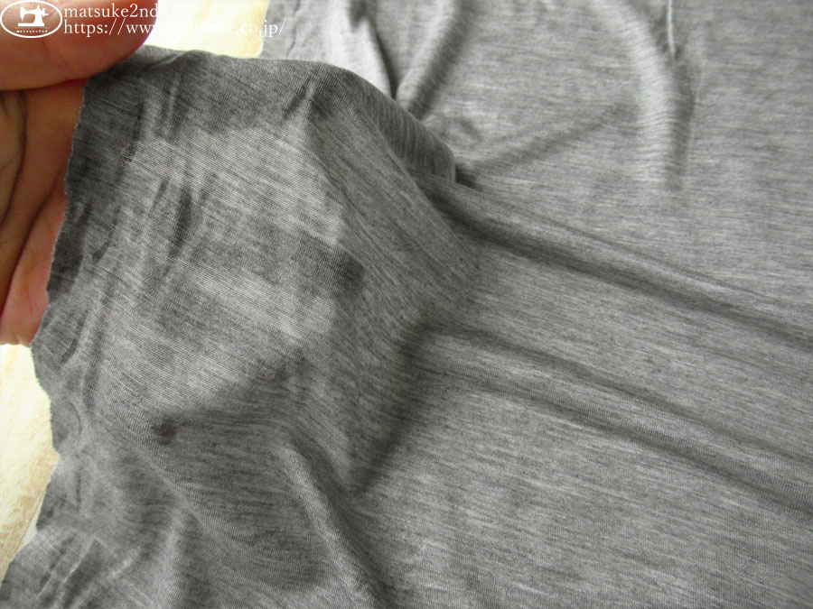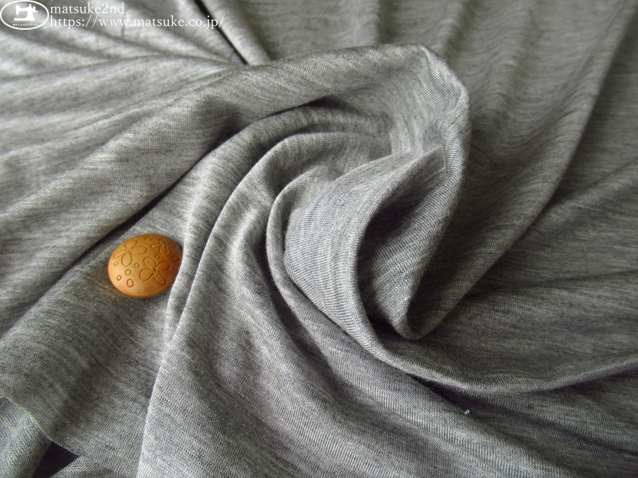 TOP 春夏物生地ニット生地 アウトレット生地ニット地 デッドストック反ニット地 ニット生地種類でさがす天竺ニット ニット生地柄でさがす無地グレー/チャコール系 ニット生地素材でさがすその他 新着商品[2026/4/21] 【デッドストック反】 しっとり、やわらか。薄手天竺ニット 杢グレー 145cm幅 レーヨン系(混紡率不明) テンション中 一般的な薄手のTシャツ地程度の厚みで、ドレープ性に優れた天竺素材です。 しっとりなめらかな肌触りと軽やかな着心地が魅力です。 ほどよい光沢感と上品な透け感、レーヨン系特有のしなやかな落ち感を楽しめます。 トップスやスカート、肌着など幅広く活躍します。 横方向に伸縮性があります。 トップスやスカート、肌着などにいかがでしょうか。 ボタンの大きさは2cm 【デッドストック反】 しっとり、やわらか。薄手天竺ニット 杢グレー 価格: ¥200 (税込 ¥220) [ポイント還元 2ポイント~] 販売期間: 数量: ×50cm 品番/カラー在庫購入np-9482 杢グレー○ 品番/カラー在庫購入np-9482 杢グレー○ 返品についての詳細はこちら