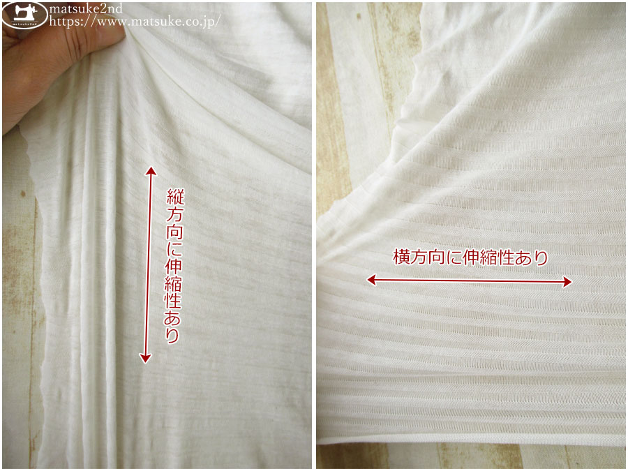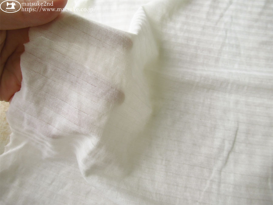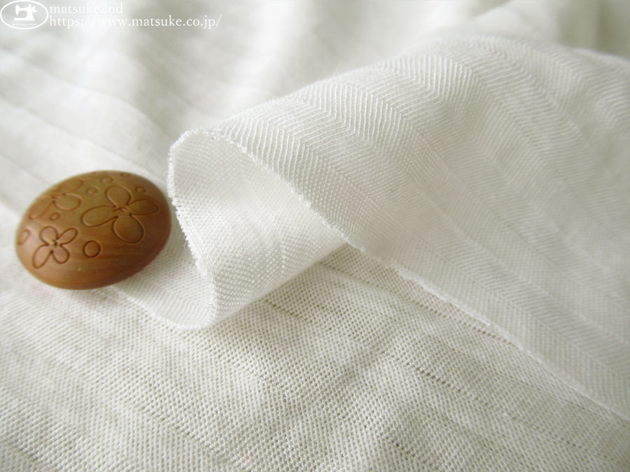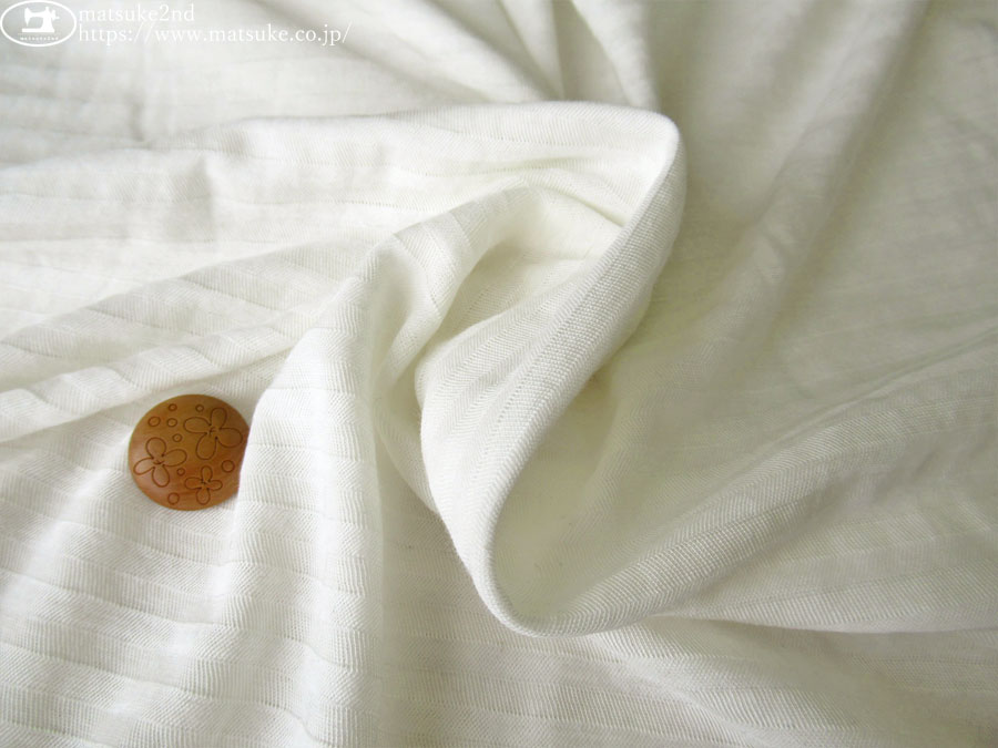 TOP 春夏物生地ニット生地 アウトレット生地ニット地 デッドストック反ニット地 ニット生地柄でさがすボーダー柄【春/夏向け】 ニット生地種類でさがす天竺ニット ニット生地種類でさがすその他 ニット生地素材でさがすコットンその他 新着商品[2026/4/24] 【デッドストック反】 薄手で軽やかなSS素材!強撚ヘリンボンボーダー2WAYニット オフホワイト 130cm幅 コットン、その他(混紡率不明) テンション中 シンプルながら表情のある、強撚ヘリンボンボーダー2WAYニットです。 軽やかなSS素材で、自然な落ち感があり、柔らかな風合いです。 一般的な薄手のTシャツ地程度の厚みで、濃色がうっすらと透け、見た目も涼しげな印象です。 シャリっとした清涼感のある肌触りで、肌に触れた瞬間に少しひんやりと感じられます。 縦横方向に伸縮性があります。 プルオーバータイプのトップスやチュニックなどのお洋服にいかがでしょうか。 ボタンの大きさは2cm 【デッドストック反】 薄手で軽やかなSS素材!強撚ヘリンボンボーダー2WAYニット オフホワイト 価格: ¥280 (税込 ¥308) [ポイント還元 3ポイント~] 販売期間: 数量: ×50cm 品番/カラー在庫購入np-9502 オフホワイト○ 品番/カラー在庫購入np-9502 オフホワイト○ 返品についての詳細はこちら