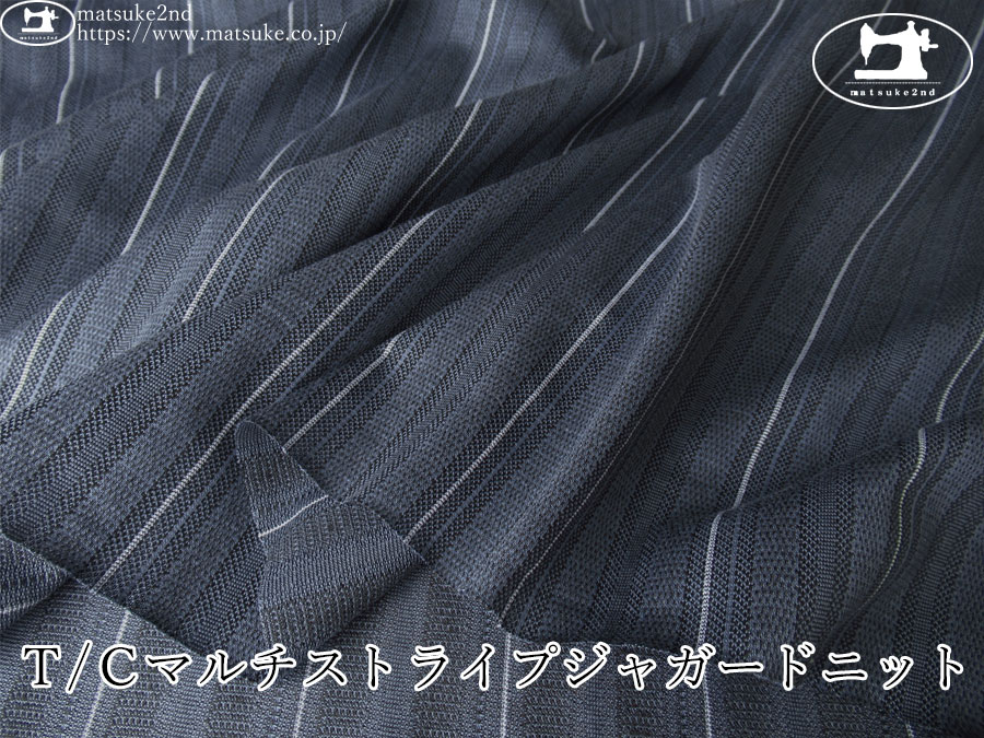 TOP 春夏物生地ニット生地 アウトレット生地ニット地 ニット生地種類でさがすジャガードニット ニット生地柄でさがすストライプ柄 ニット生地素材でさがす合繊ポリエステルポリエステル混紡 ニット生地素材でさがすコットンコットン混紡 アパレル使用反ニット生地素材コットン アパレル使用反ニット生地素材その他 アパレル使用反ニット生地柄チェック・ドット・ストライプ・ボーダー 新着商品[2026/4/28] 【アパレル使用反】 T/Cマルチストライプジャガードニット スモーキーブルー系 約170cm幅 コットン55%ポリエステル45% テンション中 いろんな幅のラインがランダムに並んだマルチストライプ柄のジャガードニットです。 カジュアルなデザインですが、自然な光沢感もあり上品さも持ち合わせた素材です。 一般的な薄手のTシャツ地程度の厚みで、やわらかく、さらっとした肌触りです。 ややざっくりとした編みで通気性がよく、若干の透け感があります。 横方向に伸縮性があります。 プルオーバータイプのトップスやチュニックなどのお洋服にいかがでしょうか。 ボタンの大きさは2cm 【アパレル使用反】 T/Cマルチストライプジャガードニット スモーキーブルー系 価格: ¥200 (税込 ¥220) [ポイント還元 2ポイント~] 販売期間: 数量: ×50cm 品番/カラー在庫購入np-9507 スモーキーブルー系○ 品番/カラー在庫購入np-9507 スモーキーブルー系○ 返品についての詳細はこちら