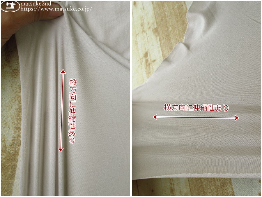 ※また、横に強く引っ張ると切口から伝線のように糸のほつれが縦状に広がります。