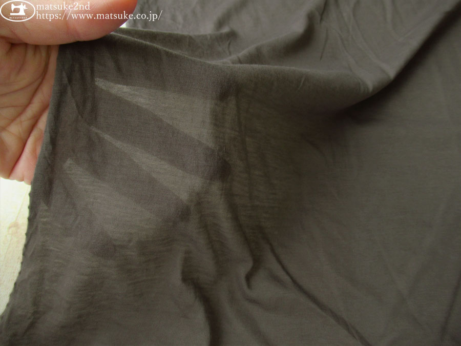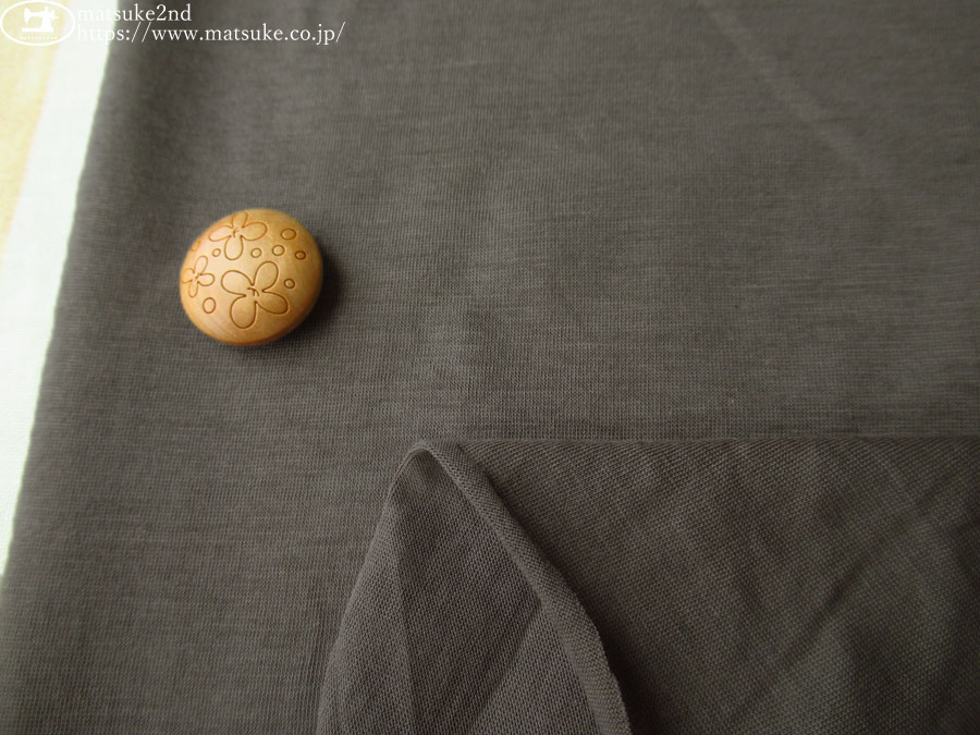 TOP 春夏物生地ニット生地 アウトレット生地ニット地 デッドストック反ニット地 ニット生地種類でさがす天竺ニット ニット生地素材でさがすコットン ニット生地柄でさがす無地グレー/チャコール系 ニット生地柄でさがす無地ブラウン/ベージュ系 新着商品[2026/4/24] 【デッドストック反】 透け感のある極薄天竺ニット グレイッシュブラウン 150cm幅 コットン(混紡率不明) テンション中 一般的な薄手のTシャツ地よりもさらに薄手で、透け感があり涼し気な天竺ニットです。 ふわっと軽く柔らかな風合いで、さらっとした肌触りが心地いいです。 横方向に伸縮性があります。 プルオーバータイプのトップスやチュニックなどのお洋服にいかがでしょうか。 ボタンの大きさは2cm 【デッドストック反】 透け感のある極薄天竺ニット グレイッシュブラウン 価格: ¥200 (税込 ¥220) [ポイント還元 2ポイント~] 販売期間: 数量: ×50cm 品番/カラー在庫購入np-9511 グレイッシュブラウン○ 品番/カラー在庫購入np-9511 グレイッシュブラウン○ 返品についての詳細はこちら