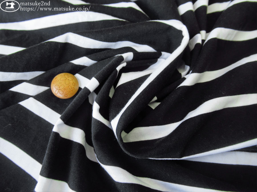 TOP 春夏物生地ニット生地 アウトレット生地ニット地 デッドストック反ニット地 ニット生地種類でさがす天竺ニット ニット生地素材でさがすコットン ニット生地柄でさがすボーダー柄【春/夏向け】 新着商品[2026/4/28] 【デッドストック反】 ボーダー天竺ニット ブラック×オフホワイト 約145cm幅 コットン(混紡率不明) テンション中 薄すぎず厚すぎずちょうどいい厚みのボーダー天竺ニットです。 やわらかい生地感で、さらっとした優しい肌触りです。 横方向に伸縮性があります。 プルオーバータイプのトップスやチュニックなどのお洋服にいかがでしょうか。 ボタンの大きさは2cm 【デッドストック反】 ボーダー天竺ニット ブラック×オフホワイト 価格: ¥240 (税込 ¥264) [ポイント還元 2ポイント~] 販売期間: 数量: ×50cm 品番/カラー在庫購入np-9518 ブラック×オフホワイト○ 品番/カラー在庫購入np-9518 ブラック×オフホワイト○ 返品についての詳細はこちら