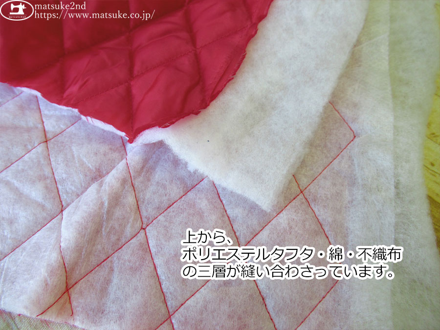 TOP 秋冬物生地 秋冬物生地その他 芯材・裏地キルト綿 芯材・裏地裏地 デッドストック反キルト デッドストック反裏地・キルト綿 アウトレット生地 アウトレット生地合繊 合繊 新着商品[2025年]新着商品[2025年12月]新着商品[2025/12/23] お買い得!【デッドストック反】 タフタ裏地付きダイヤキルト芯 レッド 115cm幅(有効幅) ポリエステル(綿:ポリエステル) キルト芯にポリエステルタフタ裏地が付いた裏地付きキルト芯です。 ほどよくボリューム感がありながらも、ふわっと軽やかな素材です。 約4.5cm四方のダイヤのステッチになります。 上からポリエステルタフタ(レッド)・綿・不織布の三層が縫い合わさっています。 ジャンバーなどのお洋服や、バッグの裏地などにいかがでしょうか。 ボタンの大きさは2cm お買い得!【デッドストック反】 タフタ裏地付きダイヤキルト芯 レッド 価格: ¥290 (税込 ¥319) [ポイント還元 3ポイント~] 販売期間: 数量: ×50cm 品番/カラー在庫購入rp-740 レッド△ 品番/カラー在庫購入rp-740 レッド△ 返品についての詳細はこちら