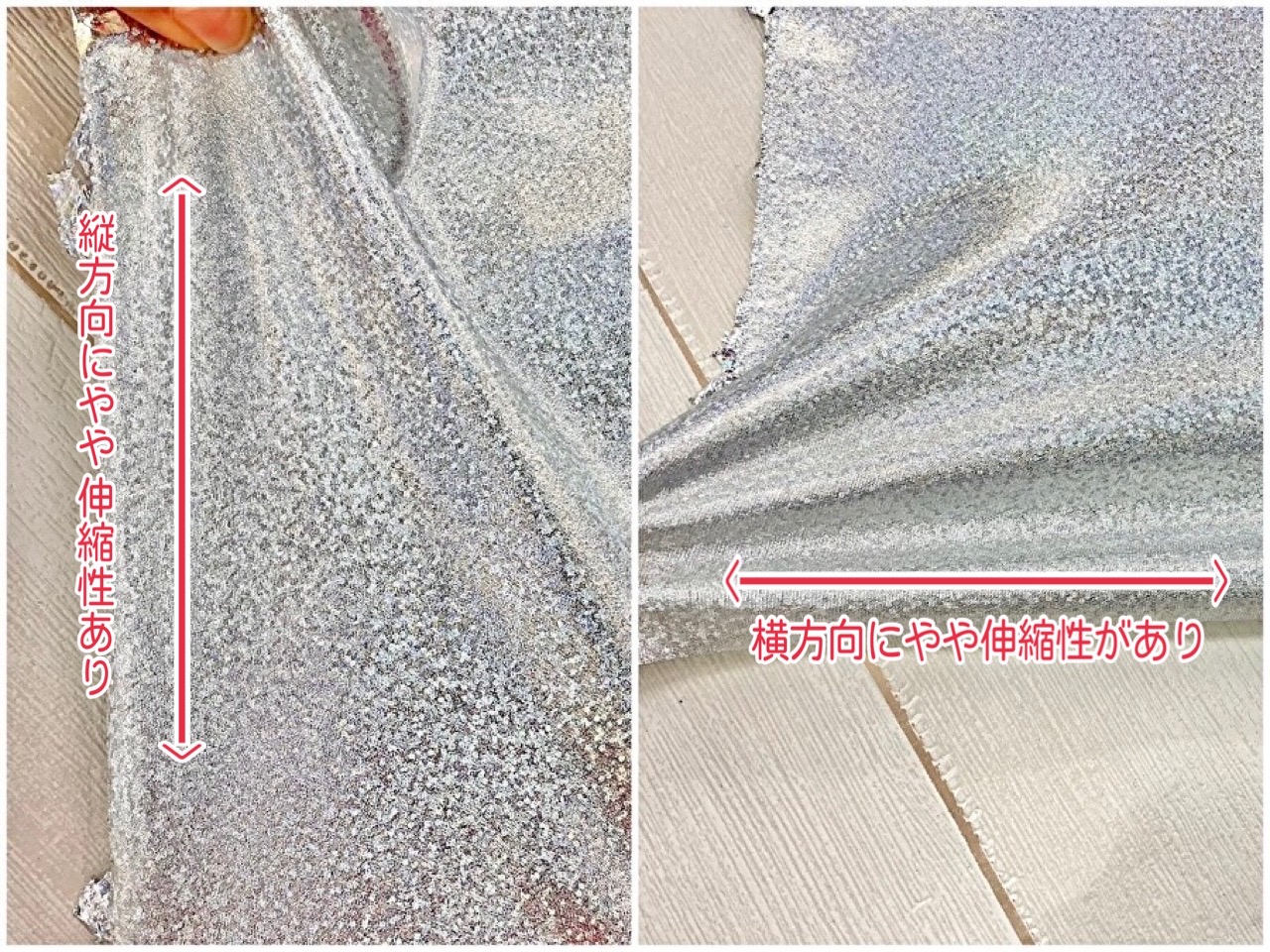 ※生地の特性上、横に強く引っ張ると切口から伝線のように糸のほつれが縦状に広がります。