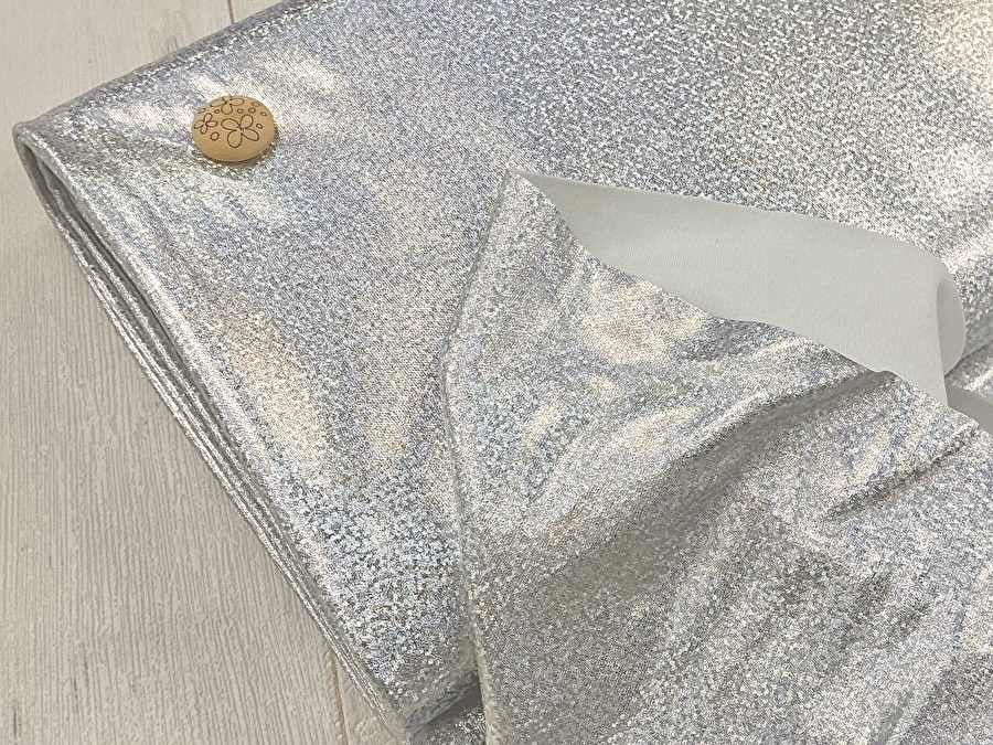 【反売り】 舞台衣装向け!ホログラム柄の箔押しニット シルバー系[ 幅135cm×約5.7m巻 ]