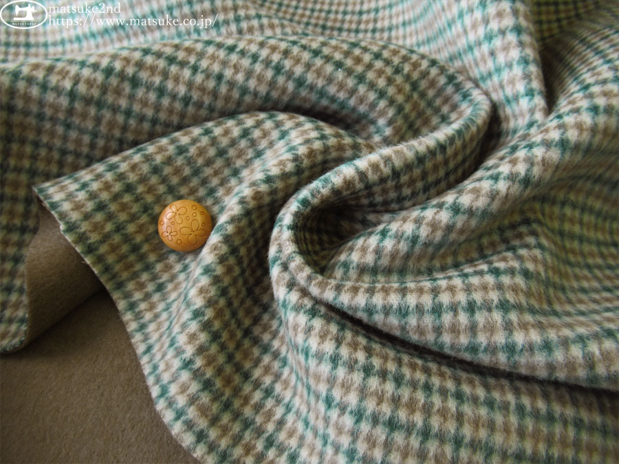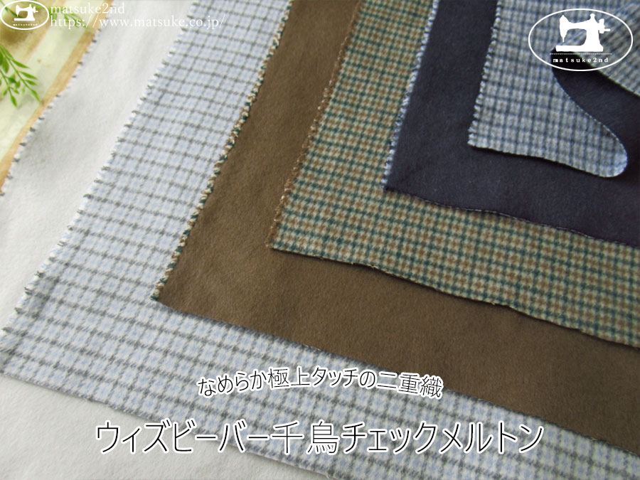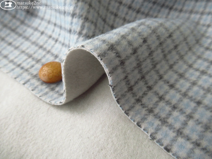 ふんわりと柔らかな生地感の二重織りメルトンで、生地の厚みは約3mm程度です。