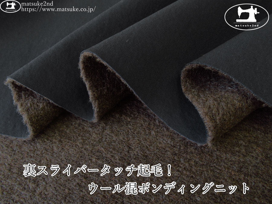 TOP 秋冬物生地ニット地 あったか!起毛生地ニット生地 アウトレット生地ニット地 デッドストック反ニット地 ニット生地種類でさがす起毛ニット裏起毛ニット ニット生地素材でさがす合繊ポリエステルポリエステル混紡 ニット生地素材でさがすウールウール混紡 ニット生地柄でさがす無地ブラック系 ニット生地柄でさがす無地ブラウン/ベージュ系 新着商品[2025年]新着商品[2025年11月]新着商品[2025/11/18] 【デッドストック】 裏スライバータッチ起毛!ウール混ボンディングニット ブラック×ダークブラウン 135cm幅 ポリエステル、ウール(混紡率不明) テンションやや低 生地の厚みは約2~3mm程度で、ほどよい肉感とハリ感があり、適度にしっかりとした生地感です。 表面はさらっとした肌触りで、裏面は密なループが並ぶスライバーのような起毛感が特徴です。 裏面の起毛はスライバー調なので表起毛ニットとしても活用できそうな暖かな素材です。 横方向にやや伸縮性があります。 アウター、バッグ、インテリア資材などにいかがでしょうか。 ボタンの大きさは2cm 【デッドストック】 裏スライバータッチ起毛!ウール混ボンディングニット ブラック×ダークブラウン 価格: ¥600 (税込 ¥660) [ポイント還元 6ポイント~] 販売期間: 数量: ×50cm 品番/カラー在庫購入WK-2046 ブラック×ダークブラウン△ 品番/カラー在庫購入WK-2046 ブラック×ダークブラウン△ 返品についての詳細はこちら